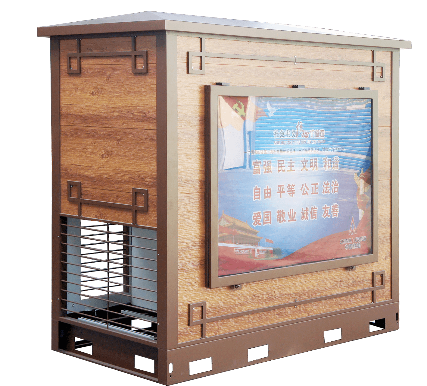 内部可集成供配电、空调制冷、电池备电、动环监控管理等物理基础设施,将网络主设备收纳全封闭机柜内。同时设计不同的美化外观,可满足城市、小区、公园、景区等特殊环境的建站需求。